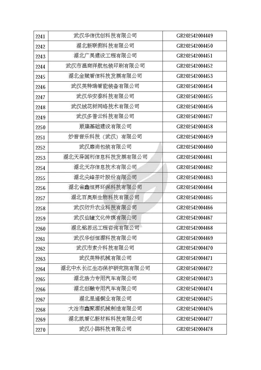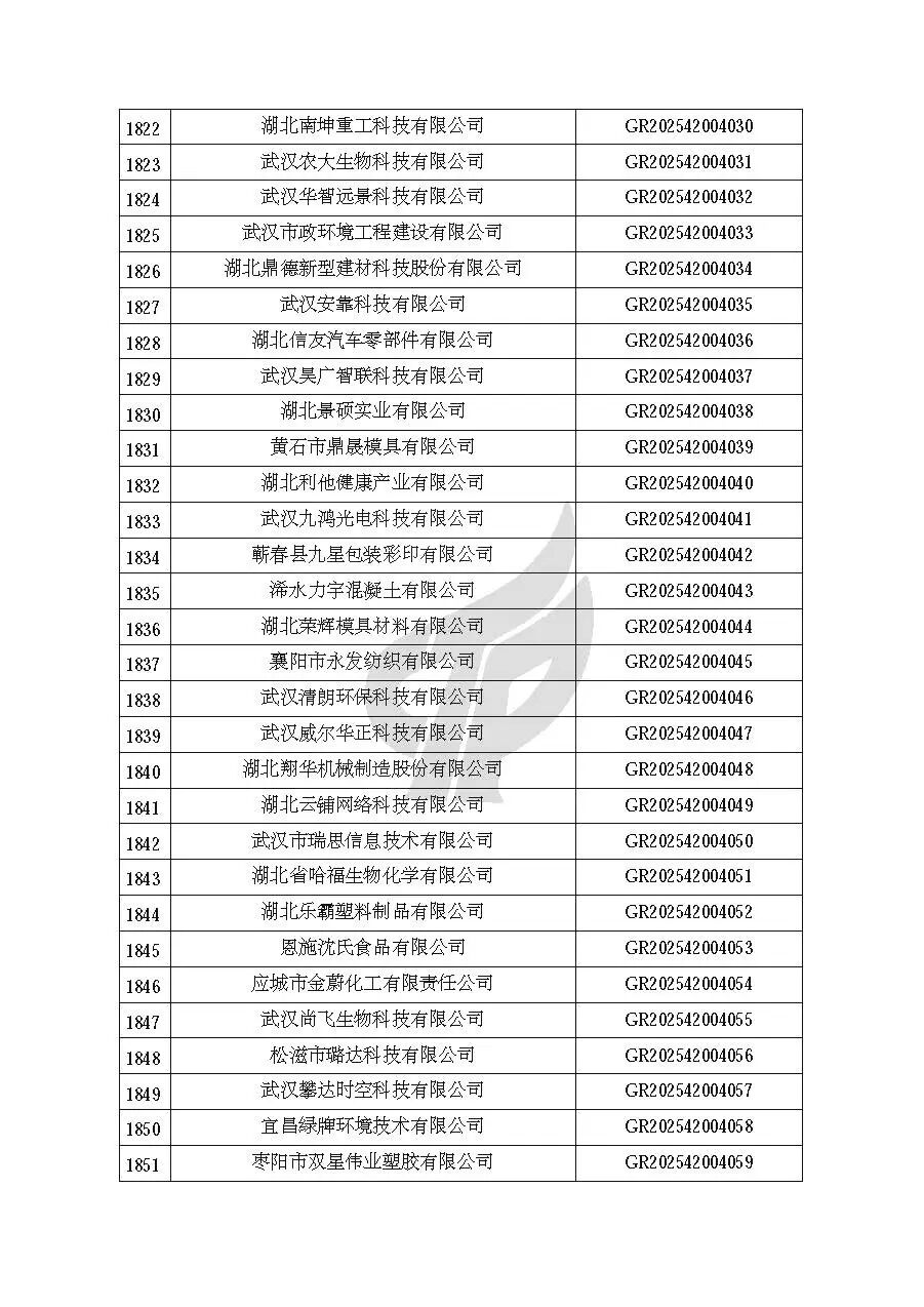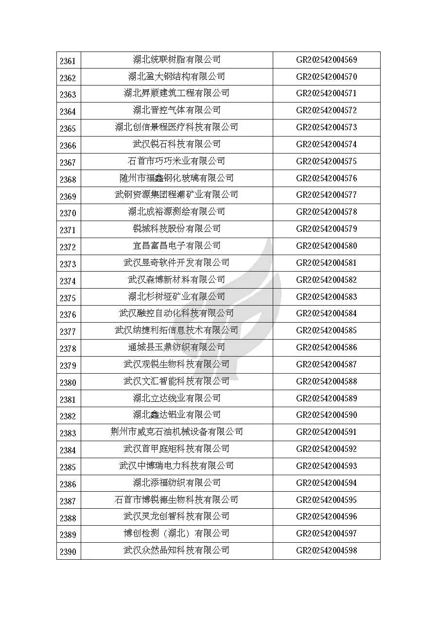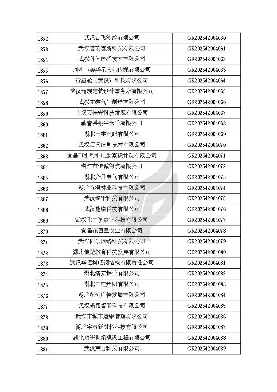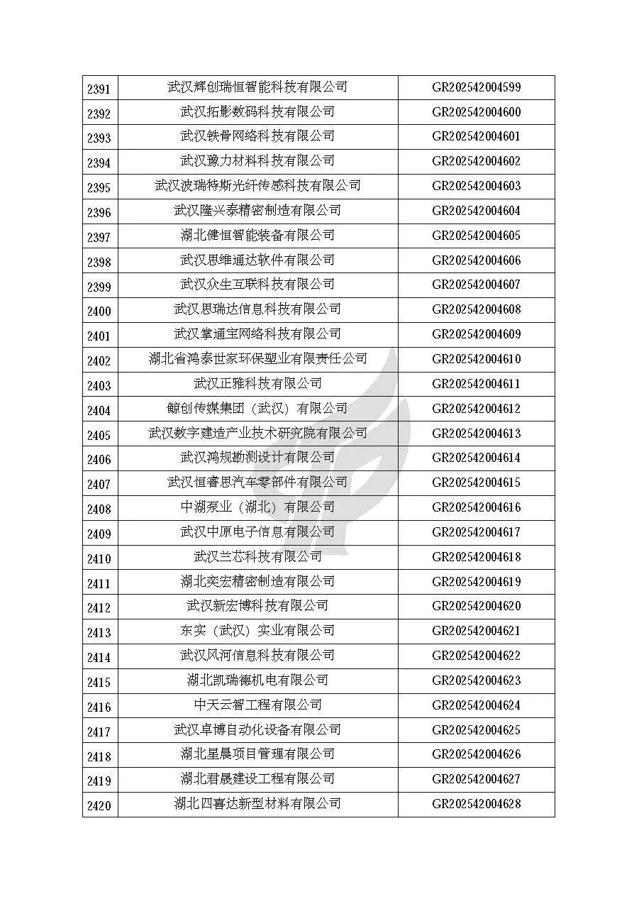 2504家!湖北省认定机构2025年认定报备的第三批高新技术企业进行备案公告