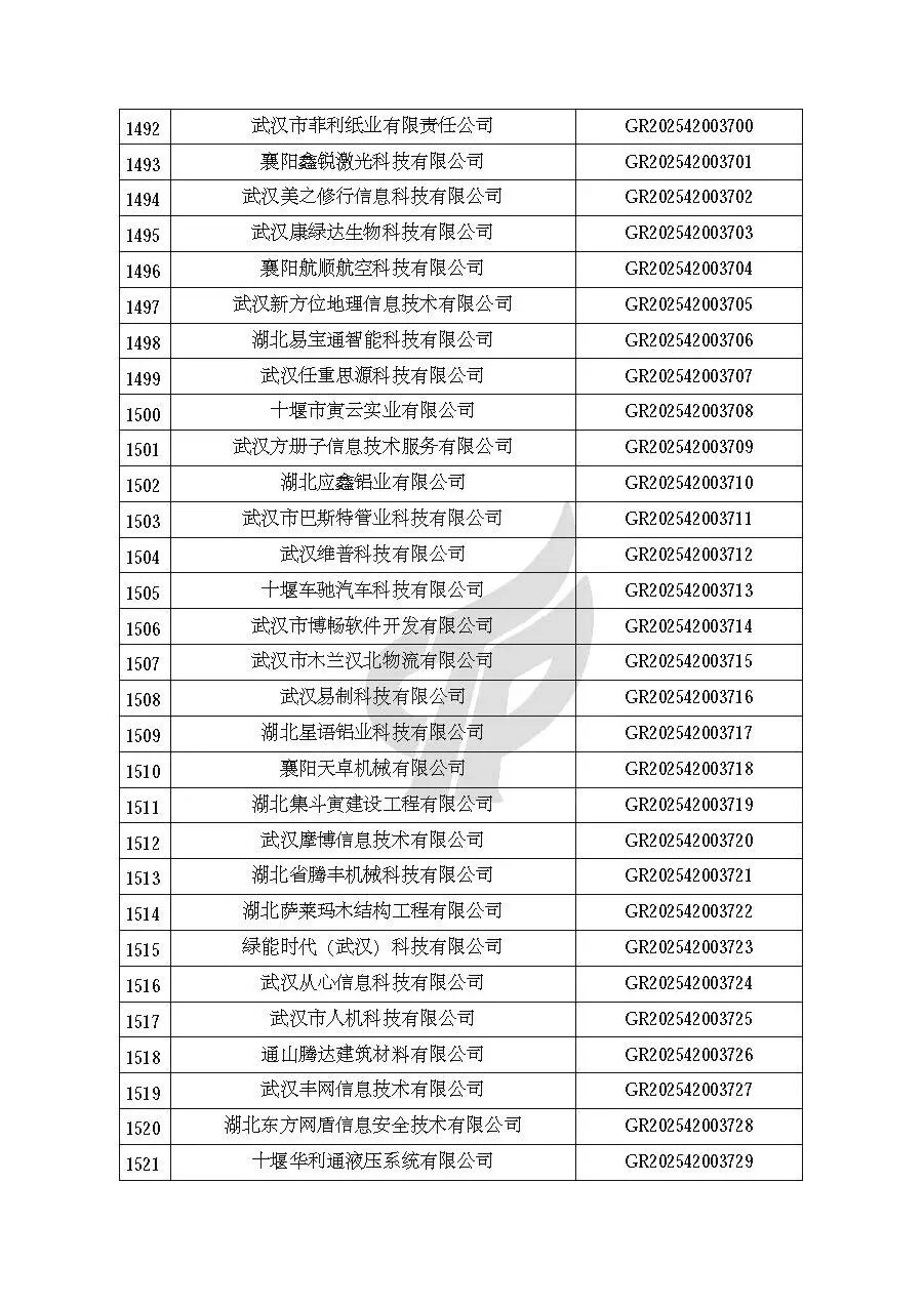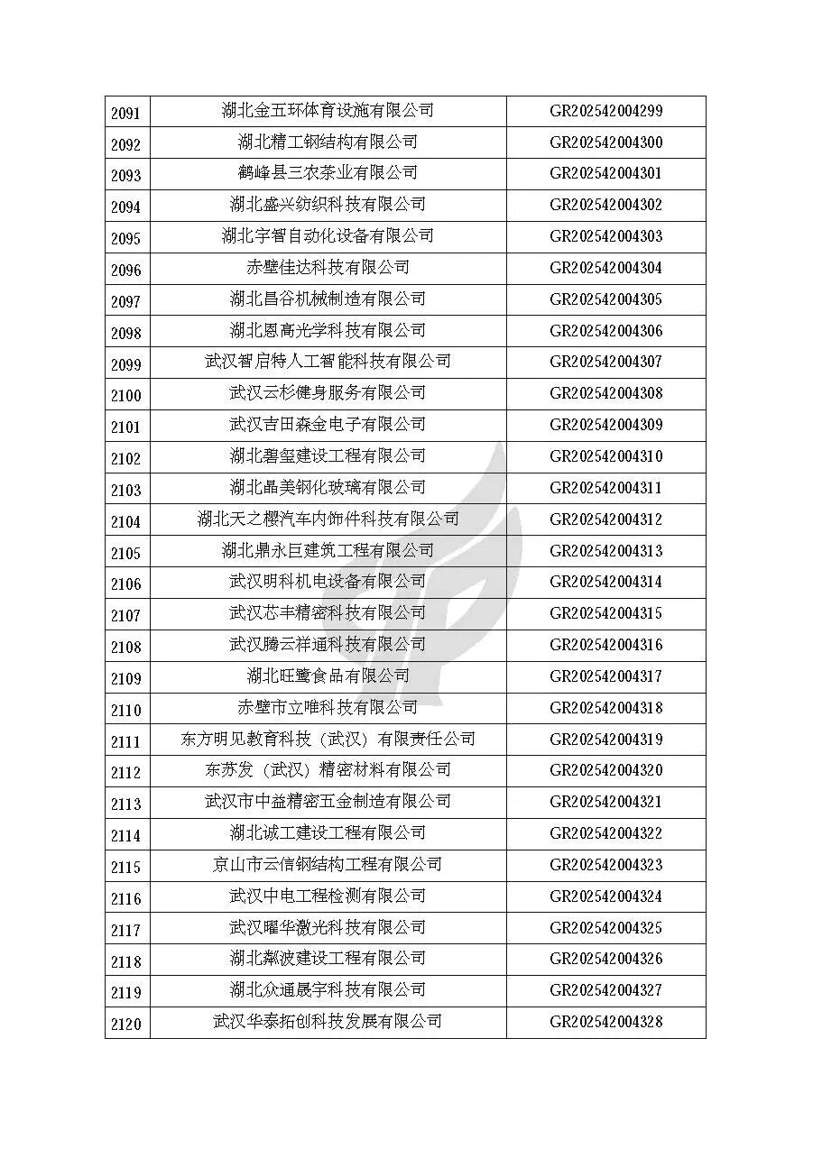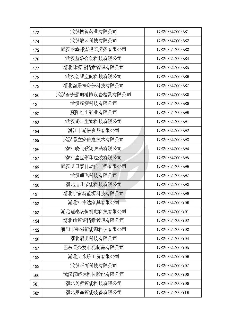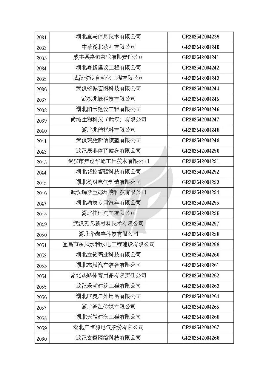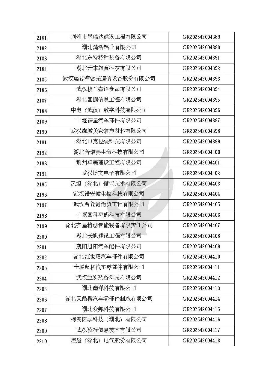 根据《高新技术企业认定管理办法》(国科发火〔2016〕32号)和《高新技术企业认定管理工作指引》(国科发火〔2016〕195号)有关规定,现对湖北省认定机构2025年认定报备的第三批2504家高新技术企业备案名单(详见附件)予以公告。