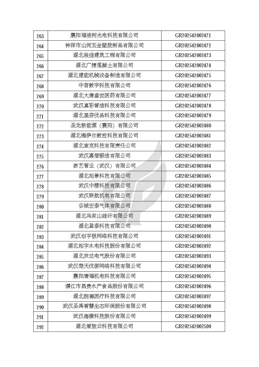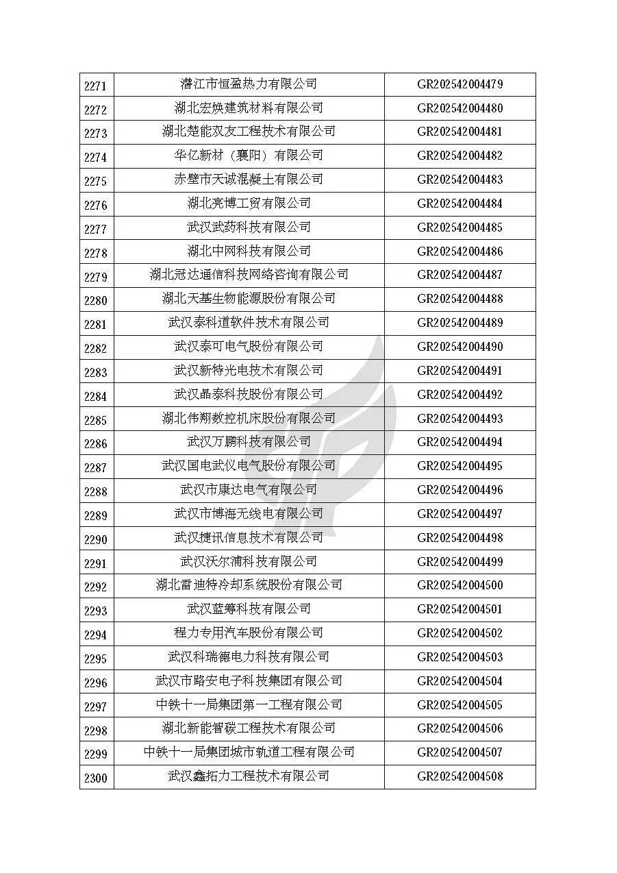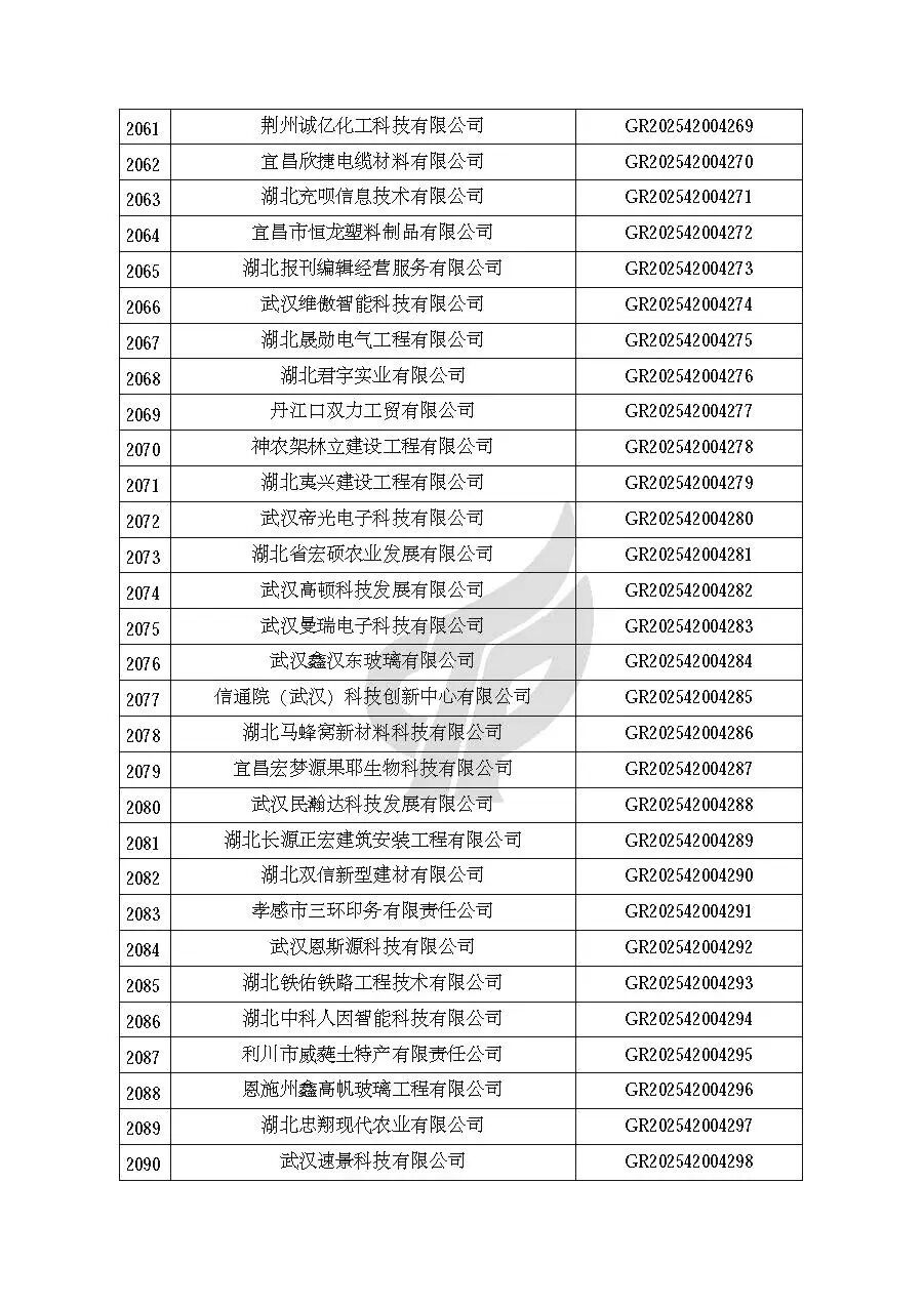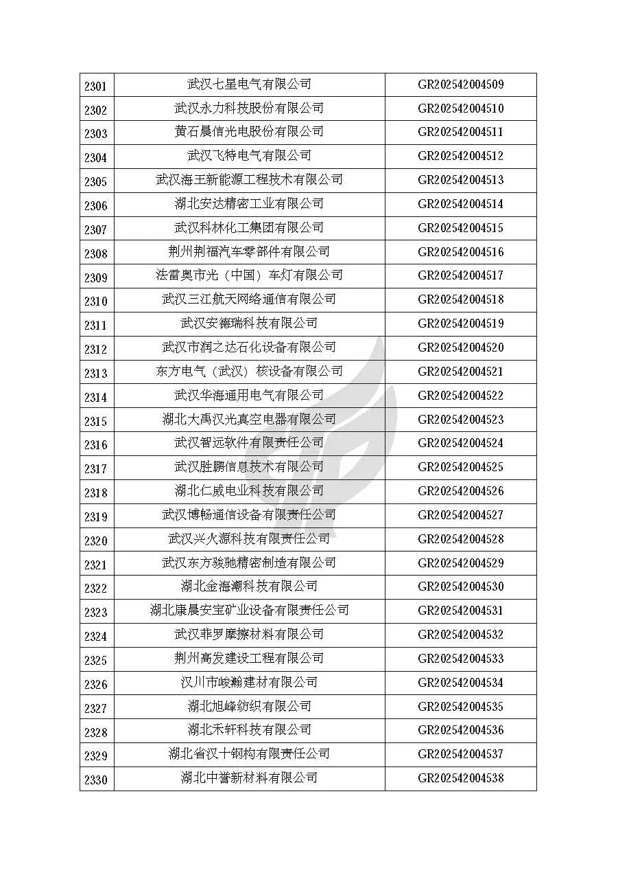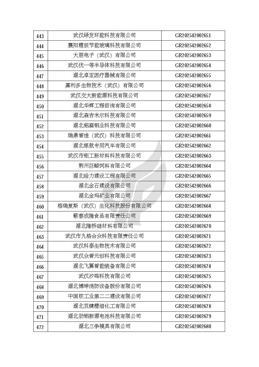 根据《高新技术企业认定管理办法》(国科发火〔2016〕32号)和《高新技术企业认定管理工作指引》(国科发火〔2016〕195号)有关规定,现对湖北省认定机构2025年认定报备的第三批2504家高新技术企业备案名单(详见附件)予以公告。