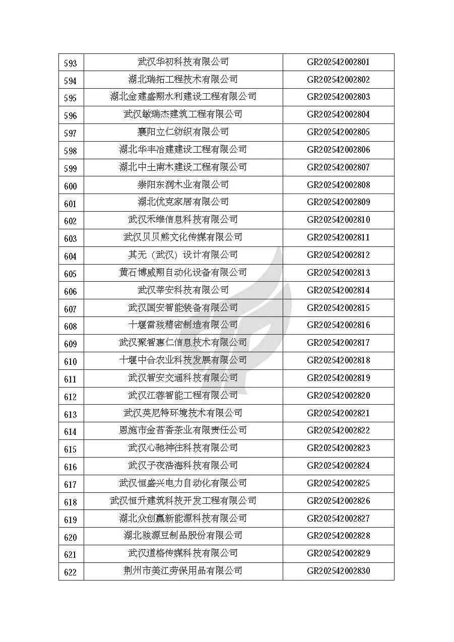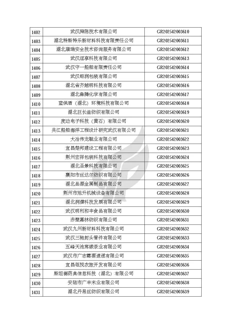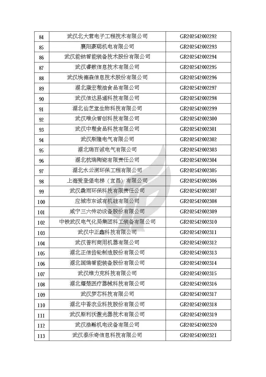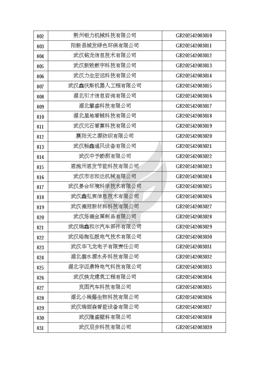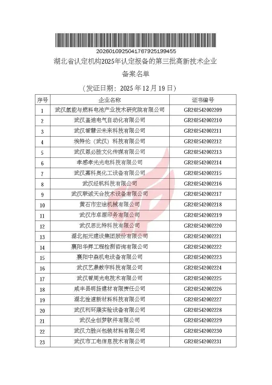 湖北省认定机构2025年认定报备的第三批高新技术企业备案名单