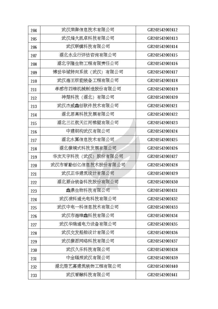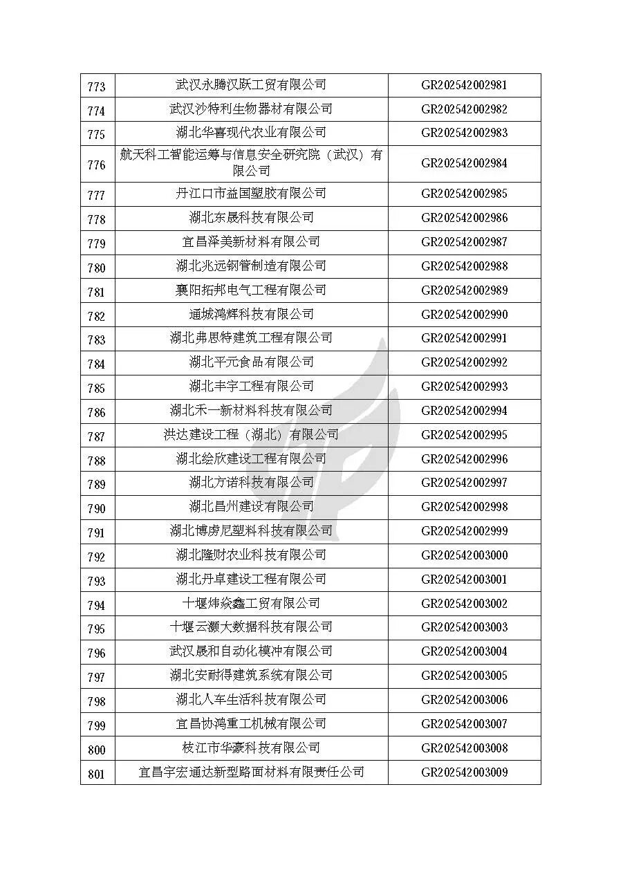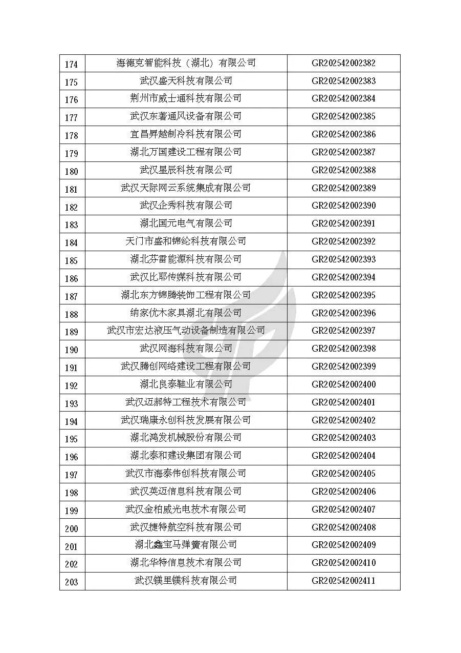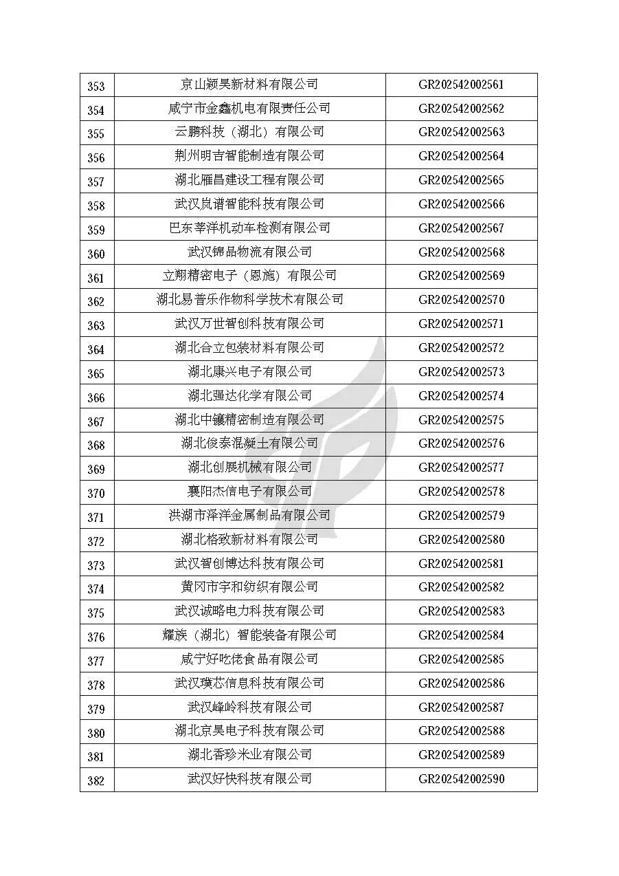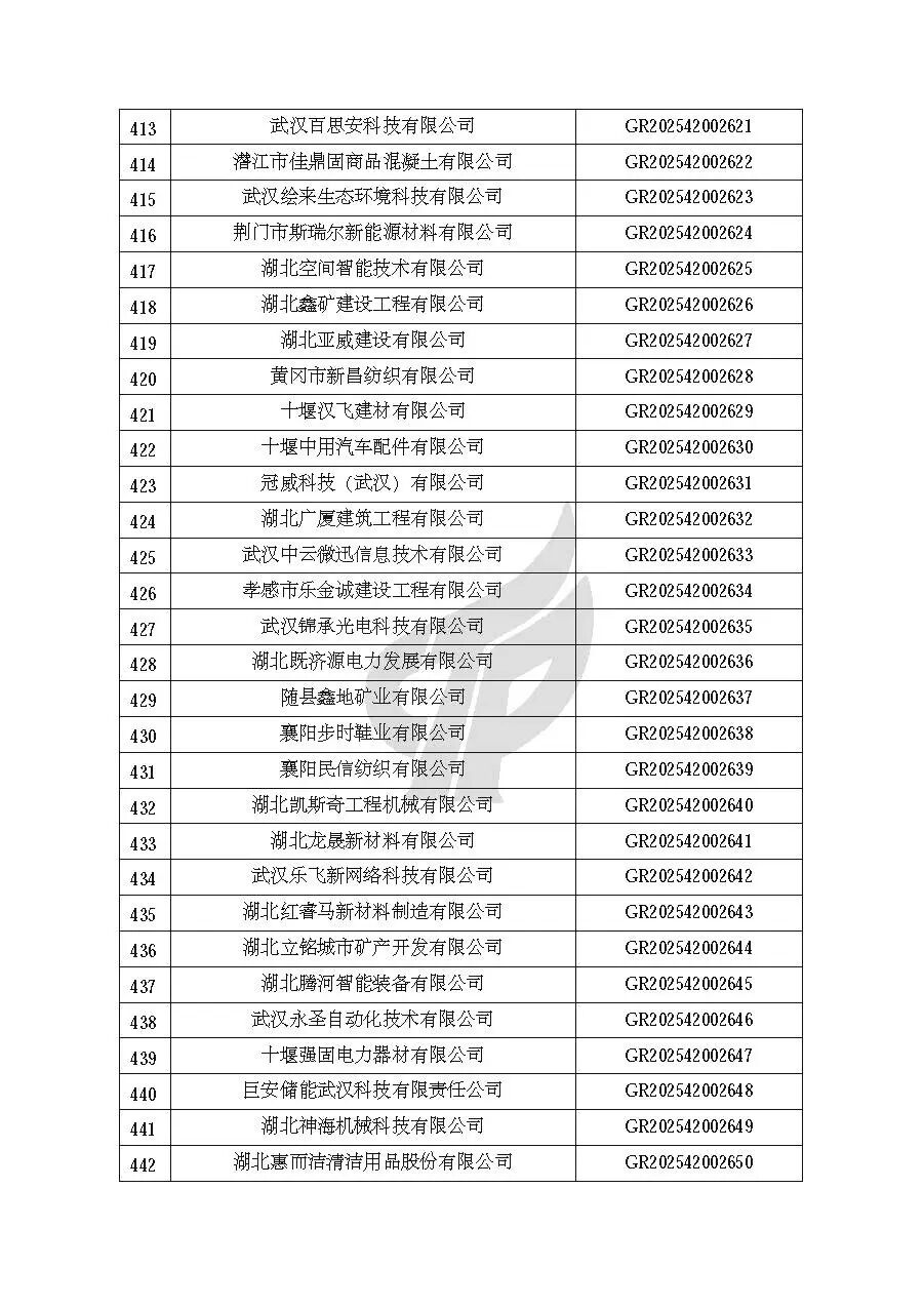 湖北省认定机构2025年认定报备的第三批高新技术企业备案名单