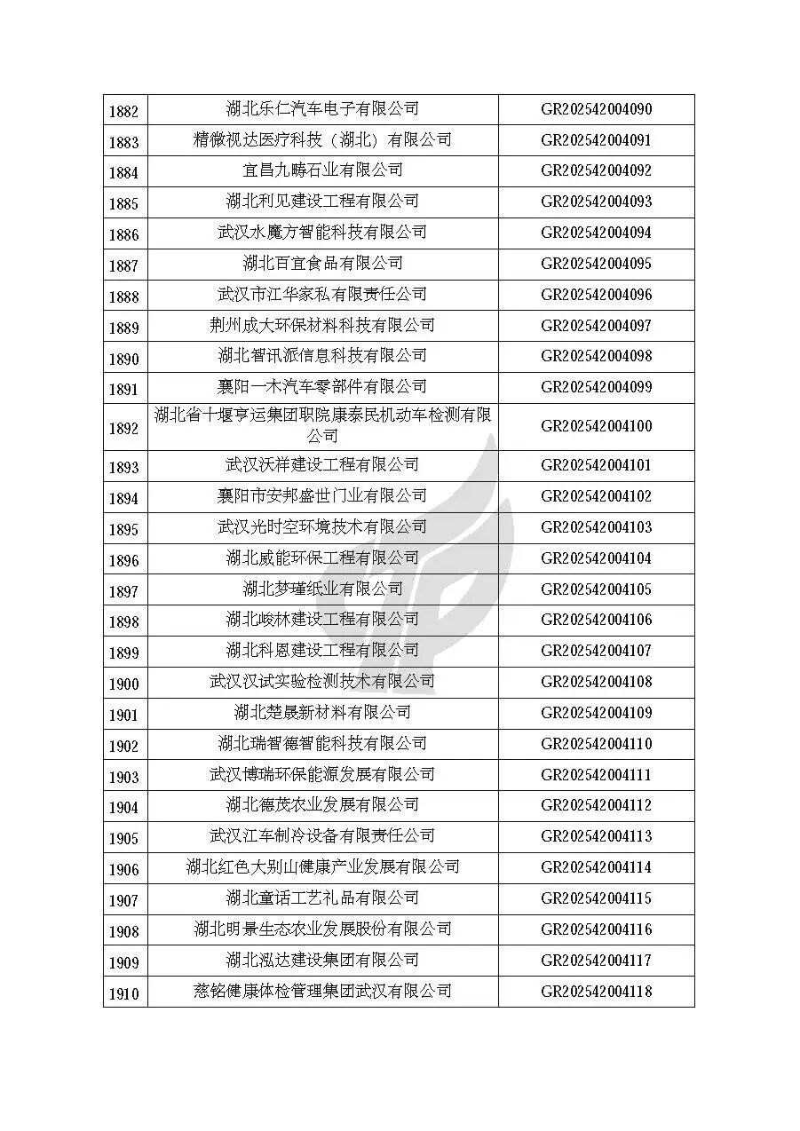1314家!湖北省认定机构2025年认定报备的第二批高新技术企业进行备案公告