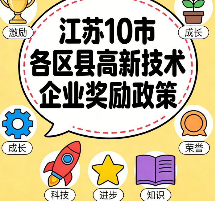 2026年江苏省高新技术企业申报条件、南京、无锡、常州、苏州、镇江、南通、扬州、泰州、徐州、连云港、淮安、盐城、宿迁市各区县奖励政策