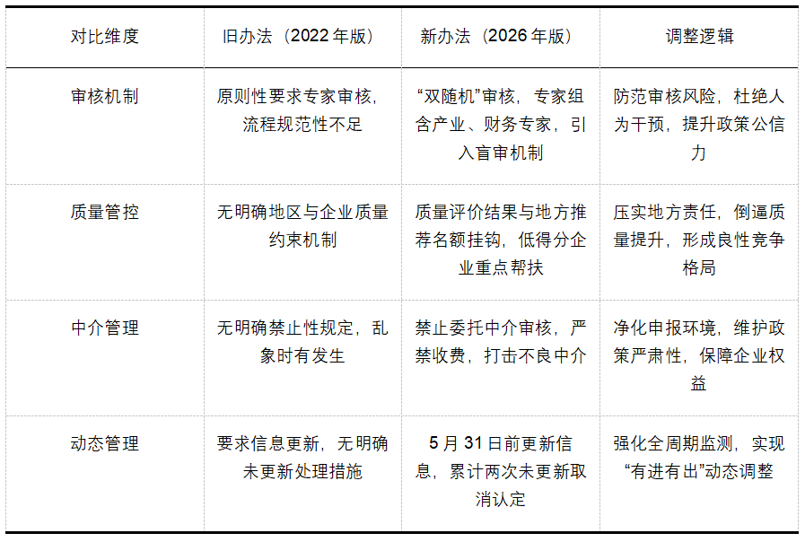 《新办法》以“质量优先、全国统一”为原则,对认定标准进行全方位优化,既提高核心指标门槛,又完善评价体系,让优质企业的筛选更科学、更规范、更公平。