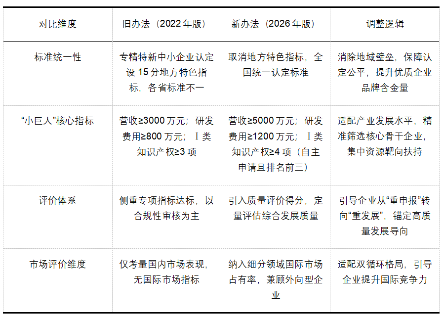 中小企业是国民经济的“毛细血管”,更是稳增长、促创新、固链条的关键力量。“十四五”以来,我国已累计培育专精特新“小巨人”企业1.76万家,带动专精特新中小企业超14万家、科技和创新型中小企业突破60万家,梯度培育的金字塔体系已然成型。此次《新办法》的修订,绝非简单的条款微调,而是对产业升级需求的精准回应,对培育工作痛点的靶向破解,标志着我国优质中小企业培育从“探索期”迈入“常态化制度期”,开启了以质量为核心、以精准为导向的全新发展阶段。本文结合新旧政策核心差异,深度拆解《新办法》的变革要义,为企业把握政策机遇、地方落实培育工作提供兼具理论深度与实践价值的参考。
