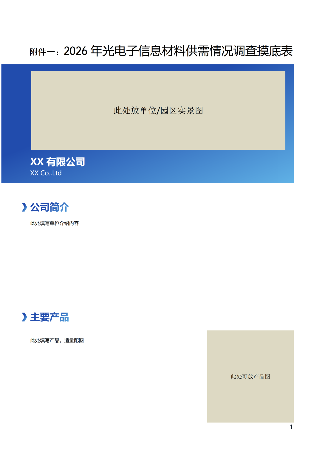 请区内有关企业、高校和科研院所,认真填报《2026年光电子信息材料供需情况调查摸底表》、《2026新材料产业链创新合作对接会报名表》,于2026年3月12日(星期四)12:00前,将调查摸底表、对接会报名表Word文件报送区企服局。我局将报送至市经信局,后由省经信厅择优安排重点企业、高校、科研院所进行路演展示,并开展面对面交流。请有意向参加活动的嘉宾积极报名,后续将举办系列技术交流活动,跟踪对接情况及合作意向。